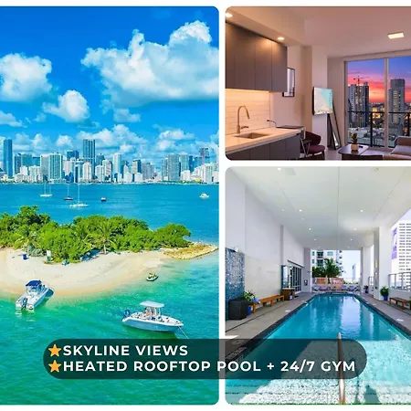 Deze 1-slaapkamer Sky-High 1 Bedroom Downtown Miami'S Heart - Pool & Gym ligt maar 500 meter van de Bayside-markt en biedt gasten de mogelijkheid om te ontspannen bij een buitenzwembad.